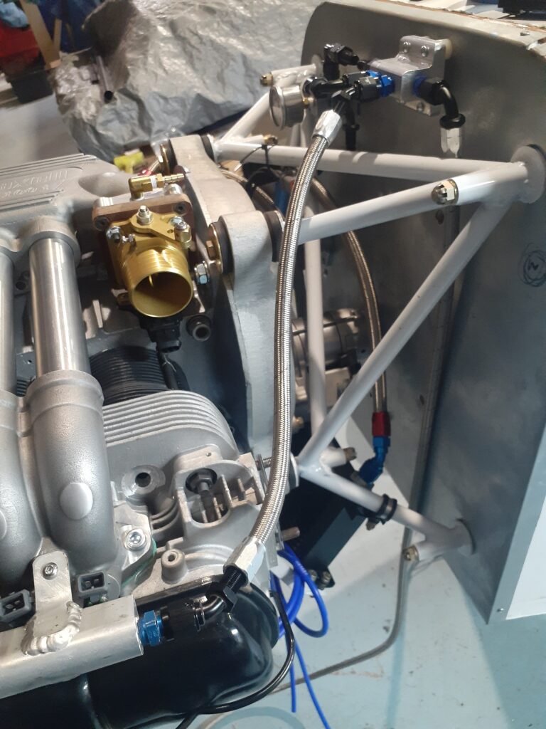 Fuel Injection Posted on October 21, 2025November 16, 2025 by Bill Fluhr Fuel pressure regulator and distribution block Example of a line going to the fuel injector manifold on Cyl 1, 2 side of the engine Wires! And more wires to be done! Post navigation ← ExhaustAnnual Breakaway Fly-in →